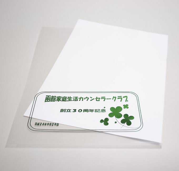 100枚程度の小ロットでも制作可能です。記念品やグッズとしても人気のクリアファイル。