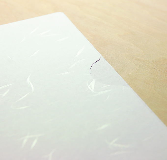 通常の透明なクリアファイル素材の他、光沢を抑えたマット調の素材や、通常より厚みを増した素材、再生率70%のエコ素材や、和紙など紙の素材もございます。